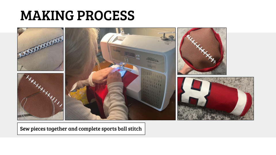 We then sewed together the pieces and completed special stitches to match the sport of the pillow.